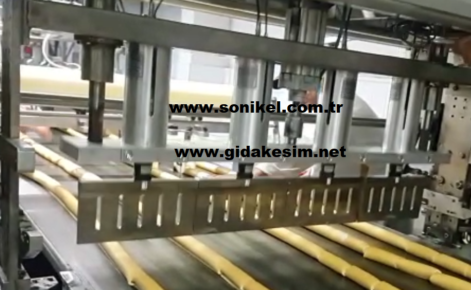 Ultrasonik gıda kesim sistemleri konusunda Ar-Ge çalışmalarını sürüdüren Sonikel Ultrasonik, hat üstündeki kesimlerde daha uzun bıçaklar elde etme konusunda bir proje daha yapmıştır. 4 adet 25cm bıçak kullanarak, 1mt.’lik titanyum Ultrasonik bıçak elde etmiştir. Toplamda 4 adet 20kHz Ultrasonik güç kaynağıyla sürülen kesim sistemi, toplamda 100cm lik bir kesim alanı sunmaktadır. Rulo kek kesiminde klasik giyotin bıçakların kısa sürede yapışkan ile dolması sonucu, kesim kalitesi gittikçe azalmaktadır ve bıçak temizleme işlemi hat duruşlarına sebep olmaktadır. Ultrasonik titanyum bıçak, titreyerek kesim yaptığı için krema yapışma oranı klasik bıçaklara göre en az 3 kat daha iyidir. Bu da hat duruşlarını azaltır ve üretim verimliliğini yükseltir. Sonikel Ultrasonik, rulo kek, helva ve lokum gibi yapışkan ve şekerli ürünlerin daha verimli kesimi konusunda çalışmalar yapmaktadır.